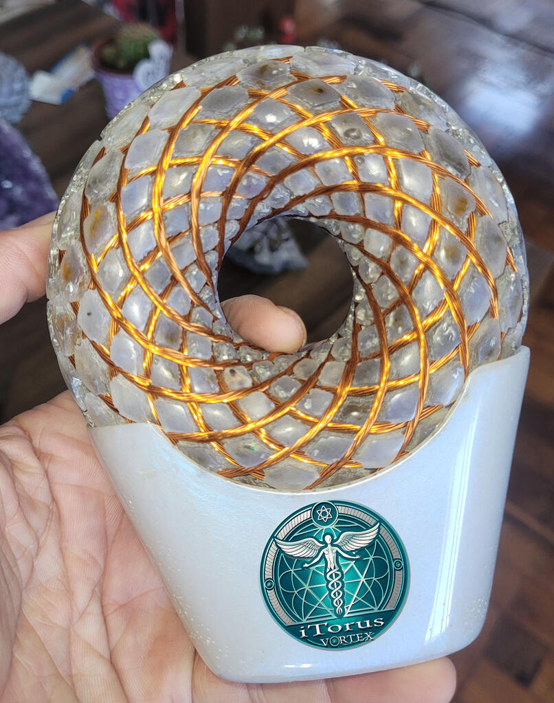 O iTorus Vórtex é mais do que um dispositivo: é um portão de acesso à sua energia vital.Criado a partir da união entre ciência vibracional, geometria sagrada e tecnologia quântica, o iTorus Vórtex é um dispositivo vibracional de alta frequência, desenvolvido com:- Cristais de quartzo de alta pureza, Cristais de Citrino ou outros cristais conforme sua necessidade;- Cobre espiralado com padrão toroidal e alumínio.E um design baseado na proporção áurea e geometria sagrada da natureza.🔷 Conecta-se via Bluetooth ao seu celular, permitindo que você transmita frequências sonoras e musicais específicas diretamente para o dispositivo. Essas ondas sonoras são então convertidas em ressonância vibracional toroidal, criando um verdadeiro campo energético pulsante.📡 O resultado?